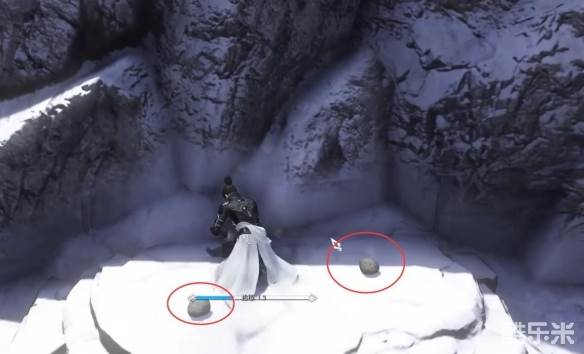 3、点自动寻路就能知道石块的位置,用技能把石壁打破后再捡石块;