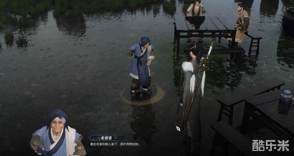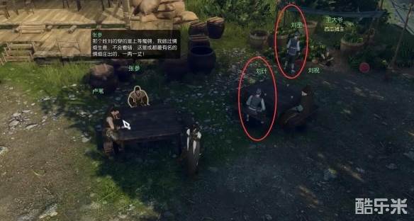 3、坐下一直对话【刘祝】等他走了后对话旁边的【老婆婆】;