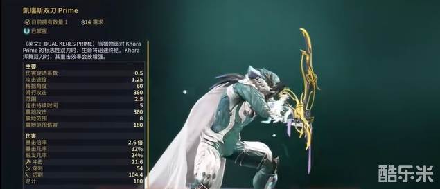 凯瑞斯双刀是一对双持近战武器,以敏捷的攻击速度和流畅的连招著称,适合近战格斗,玩家可以利用其快速的攻击组合对敌人进行持续打击。凯瑞斯双刀的每击伤害高,且具有较强的破甲能力,适合对付装甲较厚的敌人,攻击范围较广,可以在短时间内对多个敌人造成伤害。