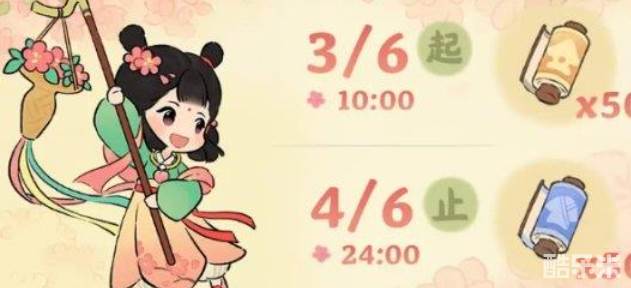 2、活动奖励:前往「花朝春晓」的签到活动,累计签到10日,共可领取【建筑卷轴*50+装扮卷轴*50】奖励。