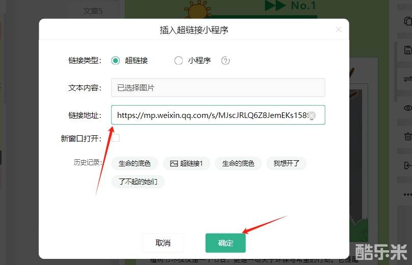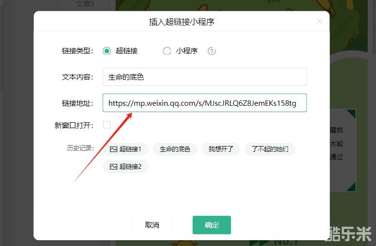 此时,您可以粘贴已经复制好的链接地址,链接可以是公众号文章,也可以是微信小程序,接着在文本内容框中输入想输入的文字即可。