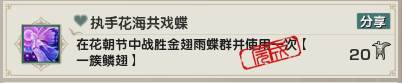 4、执手花海共戏蝶:去万花万海等它刷蝶群,杀完并使用【一簇鳞翅】达成