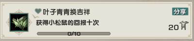 6、叶子青青换吉祥:先去帮别人护花拿小叶子,然后去找主城的小松鼠提交,概率触发回报,需触发10次