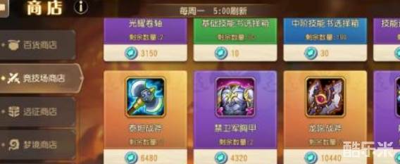 1、竞技场商店:共统帅之锋和覆霜之石两件橙1装备,但是每件的购买上限为2次。