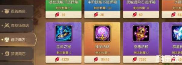 2、远征商店:共有水晶魔杖和玲珑水晶两件橙1装备,每件的购买上限为2次。