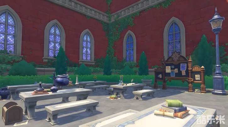 法学院的建筑风格独特,融入了古典与奇幻的元素,红墙搭配蓝色房顶,色彩艳丽,引人注意。学院内部的点缀也很精致,日月时钟、徽章、日晷、战旗等经典装点,营造出浓厚的魔法气氛。先知Lulu的雕像矗立在学院广场的中间,塑像下的魔法光辉代表了理想的灵感,是所有玩家务必打卡的胜地。此外,法术学院还设有各种教室和调研室,供玩家学习与实践各种魔法技能。