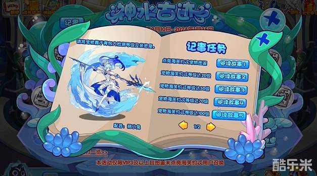 洛克王国手游神水古迹怎么打?洛克王国手游中的神水古迹活动是一个为VIP用户准备的特别挑战,旨在让玩家通过购买古迹书,逐步解锁并最终召唤强大的宠物海芙约忒。下面和酷乐米小编一起来看看吧