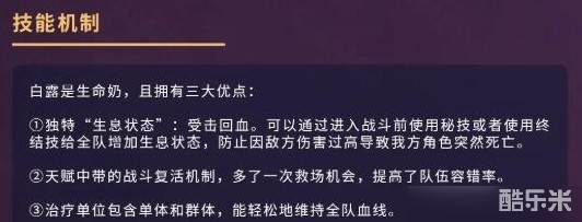 ②天赋中带的战斗复活机制,多了一次救场机会,提高了队伍容错率。