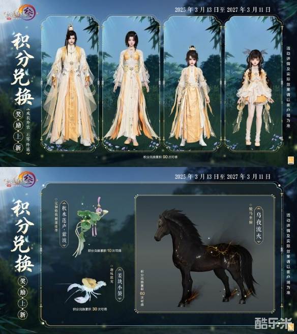 骏马坐骑【乌夜流火】兑换60次可获得,兑换90次获得时装云霆的【终遥】染色。