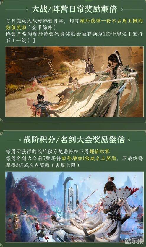 丝路风语赛季已经来到了赛季末剑网3将开启太极秘录赛季冲刺活动,那么该活动有什么内容呢,新赛季开启前大战/阵营日常、战阶积分/名剑大会、千里伐逐等活动的奖励都会翻倍,且团队秘境首领还会额外掉落装备。下面和酷乐米小编一起来看看吧