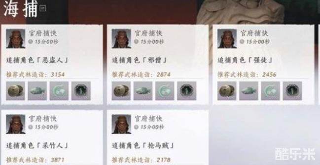 燕云十六声中玩家们可以通过海捕来快速获得积分,只需通过设置找到悬赏,在指定的界面选择逃犯进行抓捕即可,下面和酷乐米小编一起来看看吧