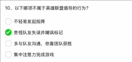 10、以下哪项不属于英雄联盟倡导的行为?