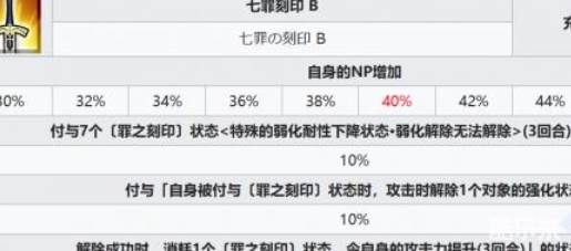 自身的NP增加,付与7个〔罪之刻印〕状态<特殊的弱化耐性下降状态·弱化解除无法解除>(3回合)【负面效果】