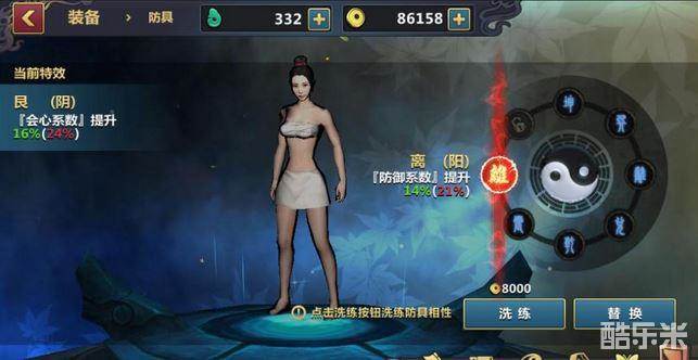 (只有防具可进行“卦象洗练”,赋予防御一个特殊“属性增幅”)