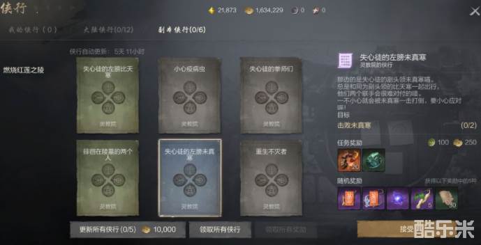 另外在游戏里还有每天的任务,游戏里会被称为侠行,在这个模块里每天都会推出不同的任务,到特定的时间之后就会刷新新的任务,如果玩家当天不参与,在错过时间之后,还有个任务就会结束,因为是有时间限制的,所以难度都不会很大,并且不会过于消耗时间,完成这些奖励之后,能得到丰厚的经验抽卡道具和养成材料,非常适合玩家在新手时期,借助每天任务快速提升自己,也能让手中所拥有的资源变得更多一些,每天任务挑战完成之后,还可以通过消耗金币的方式,去刷新更多的任务,有机会开启一些高品质的任务奖励也会变得更丰富。