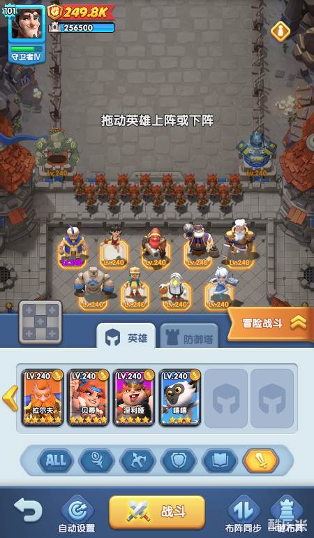 包括两位专精单体攻击的精英及BOSS,三位擅长群体攻击的英雄清理小怪,以及两位擅长阻挡的英雄占据前排提供阻挡效果。