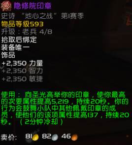 解析:全职业推荐的饰品,完美的属性波动完美的数值,就算没有全队佩戴也是相当可观的数值,高贵的三系通用属性,无疑是新版本的第一选择。