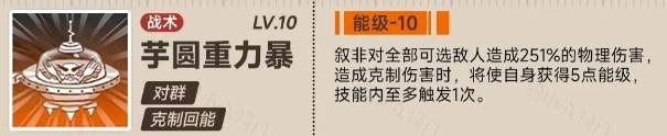 叙非对全部可选敌人造成251%的物理伤害,造成克制伤害时,将使自身获得5点能级,技能内至多触发1次。