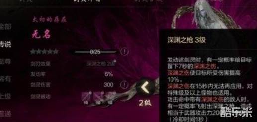 比如剑灵【无名】发动剑刃【深渊之枪】3级时,一定概率给目标造成7秒深渊之伤。且深渊之伤造成敌人所受伤害提高10%。