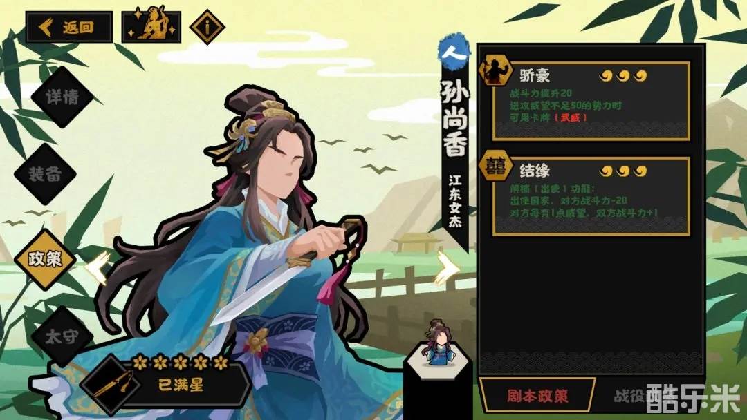 孙尚香是无悔华夏汉末三国剧本的人级名臣,东汉末年讨虏将军孙权之妹,曾为左将军刘备之妻。那么无悔华夏孙尚香怎么样呢?下面和酷乐米小编一起来看看吧