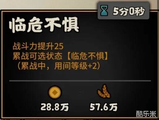 建议直接当成无消耗25战力提升政策即可,累战遇到【临危不惧】的概率不高~