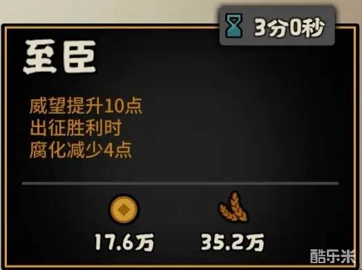 满级效果:军事产业达到3级,粮食消耗下降。