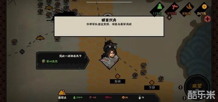 (要求出兵事件后,触发击败流寇的引导,击败流寇后在渡河点触发破釜沉舟事件成就。)