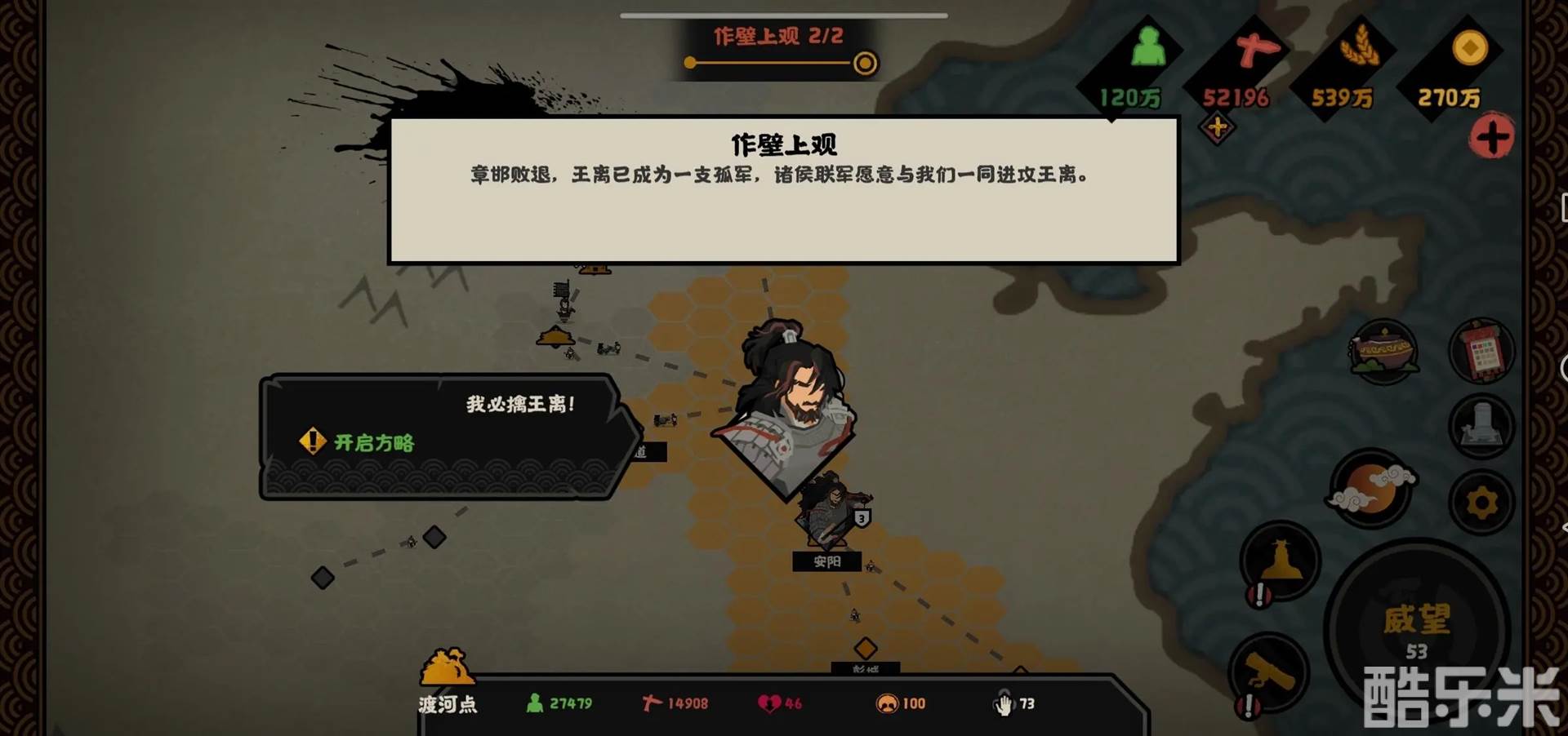 (九战九胜事件后触发作壁上观事件,顺着选项开启方略生擒王离,解锁作壁上观事件成就。)