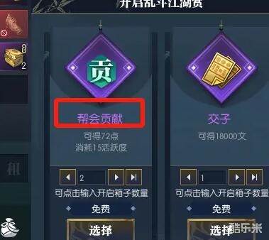 3、挂完拿到【乱斗江湖赏】盒子,奖励选择【帮会贡献】;