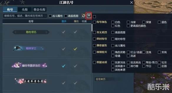 3、勾选后就能快速筛选并显示带属性称号佩戴即可;