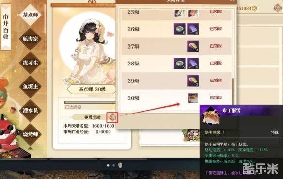 3、身份等级达到30级即可免费获得坐骑【布丁酥雪】;