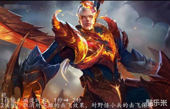 但即使如此依然认为铠在游戏中表现的极度强势,所以这次又再次调整,增加了1技能的减速,取消了2技能的击飞效果!大家都知道,对于铠而言,这个击飞有多重要,所以还是削弱了。