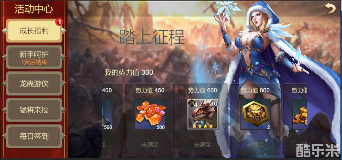 二、充分利用新手期,特别是超级新手期,无损耗调整阵容和技能,开荒期建议用弓兵,能力均衡,步兵行军慢开荒吃亏,骑兵征兵消耗资源多,这只是常规建议,还是要看自己的卡池情况