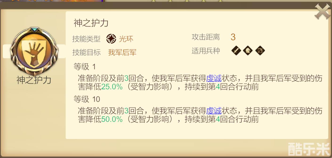 我军后军3回合虔诚+减伤,有我在前3合你为所欲为