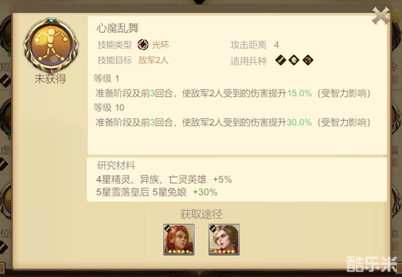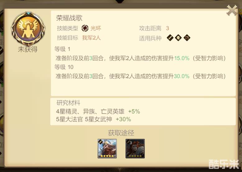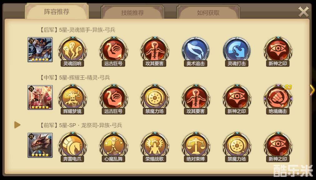3、技能方面,要在准备阶段和前3回合最大幅度放大伤害,荣耀战歌、心魔乱舞成为不二之选