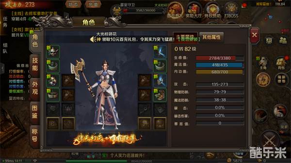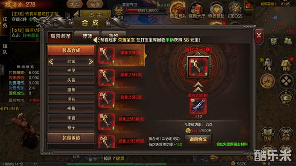 3、英雄内还有各种装备、神饰等,玩家也可以对其进行合成强化,提高角色属性。