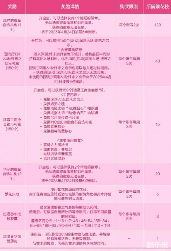2、玩家通关地下城即可获得繁花枝(每周最多210个),该道具能用来兑换奖励;