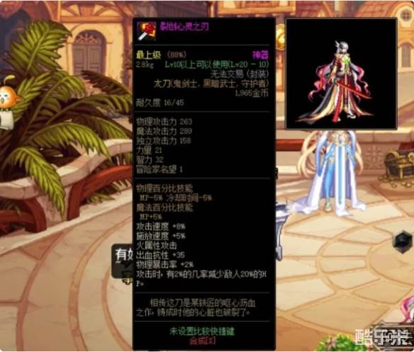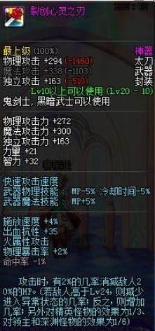 《地下城与勇士:起源》裂创心灵之刃属性介绍: