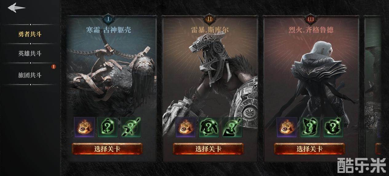 不同的共斗模式会掉落不一样的装备素材,击败敌人,继承者们就能获取丰厚的奖励——套装和神话装备,随机符文、神话装备打造图纸及打造材料和共斗徽章。