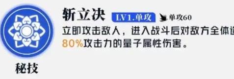 5、秘技 - 斩立决:对有量子弱点的敌方单体削韧30,若有三个量子弱点角色,秘技进场可直接触发追加攻击;队友秘技进战不论削减多少韧性均为雪衣叠1层「恶报」 。