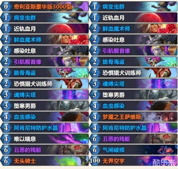 4、快攻卡组在面对水蛭的解场和回血往往需要耗尽前期的伤害解掉水蛭,非常容易让dk过度到气闸破损、丑恶的残躯的回合,后续依靠奇利亚斯回血就足以劝退快攻。