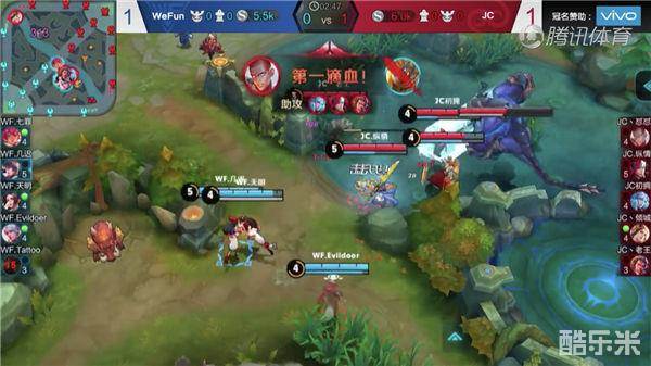 解析:双方开局没有发生过于激烈的战斗,只是进行适当地干扰,在发育一定时间后,红方等级已全部达到四级以上,此时是红方较为强势的时期,所以红方阵营果断集结,攻打暴君,蓝方也不想轻易放弃,也主动上前干扰,红方达摩找寻机会,直接闪现加一技能瞬间接近蓝方鬼谷子,并利用大招将其击退到地形边缘,红方韩信等队友及时跟上,在瞬间将鬼谷子击杀,之后本想继续进攻暴君,但蓝方上路花木兰赶到,所以双方都适当撤退,但红方拿下了一血,取得了一定的优势。