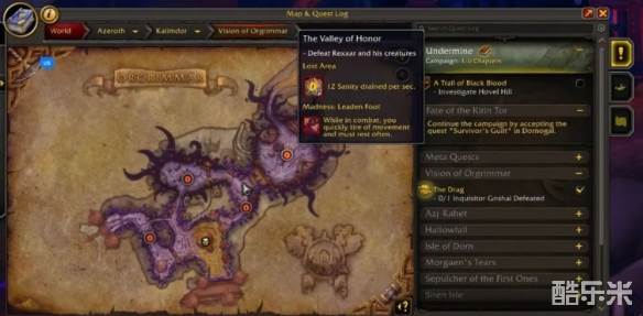 1、我们需要进入奥格瑞玛惊魂幻象,前往荣誉谷,定位锻造训练师小屋,坐标(82,23)的位置。