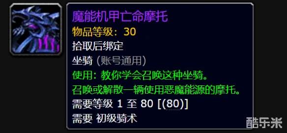 魔兽世界11.1版本上线带来了地心之战的第2赛季,就在最近魔兽世界11.1.5版本的PTR已经上线,爆料了许多11.1.5的内容,魔能机甲亡命摩托是魔兽世界11.1.5新增的一个坐骑,下面和酷乐米小编一起来看看吧