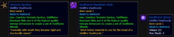 对应【抗虚空火焰皮革】和【触手辐条】,需要工程专业提供6个最高品质的熵能增幅器,并且和这两个物品组合。
