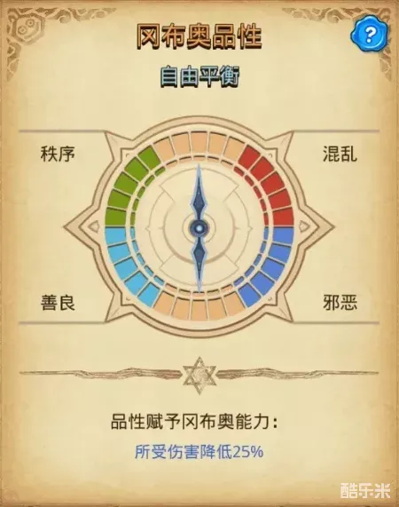 品性分为2个指针,上边的指针是秩序、自由、混乱,下边的指针是善良、平衡、邪恶,完整的品性就是两者的结合。