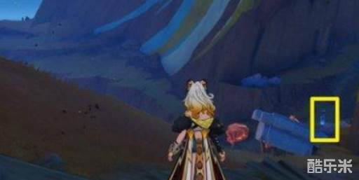 4、站在锚点处,往南方向看,会发现一座高山中间有一个缝隙。