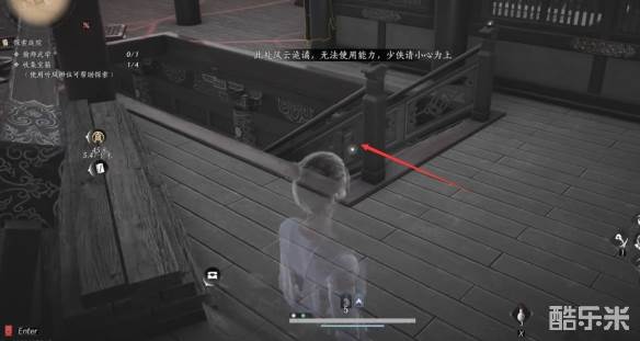 8、沿着木板走到对面的光圈才可以开始偷师。