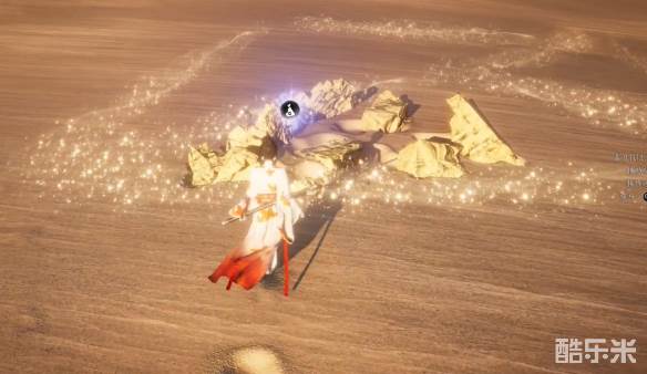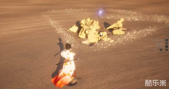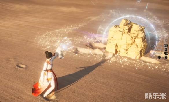 1、在沙漠当中可以看到光圈以及石头,这种就是匿影飞鲶所在的位置。