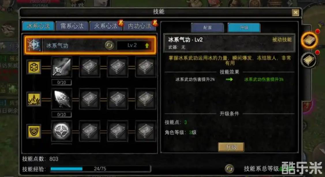 冰系心法在游戏里面是特别重要的,主要适用于法师等等远程输出类型的角色,而他的技能是冰封万里,简单来说就是一旦施展,可以提升冰属性的技能伤害,而且还能够冻结敌人,要说冰系心法可以起到控场和稳定输出的作用,在施展的时候,能够给敌人造成减速,冻结等等效果。